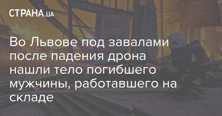Во Львове под завалами склада, который был атакован сегодня утром российским дроном, нашли тело погибшего мужчины.