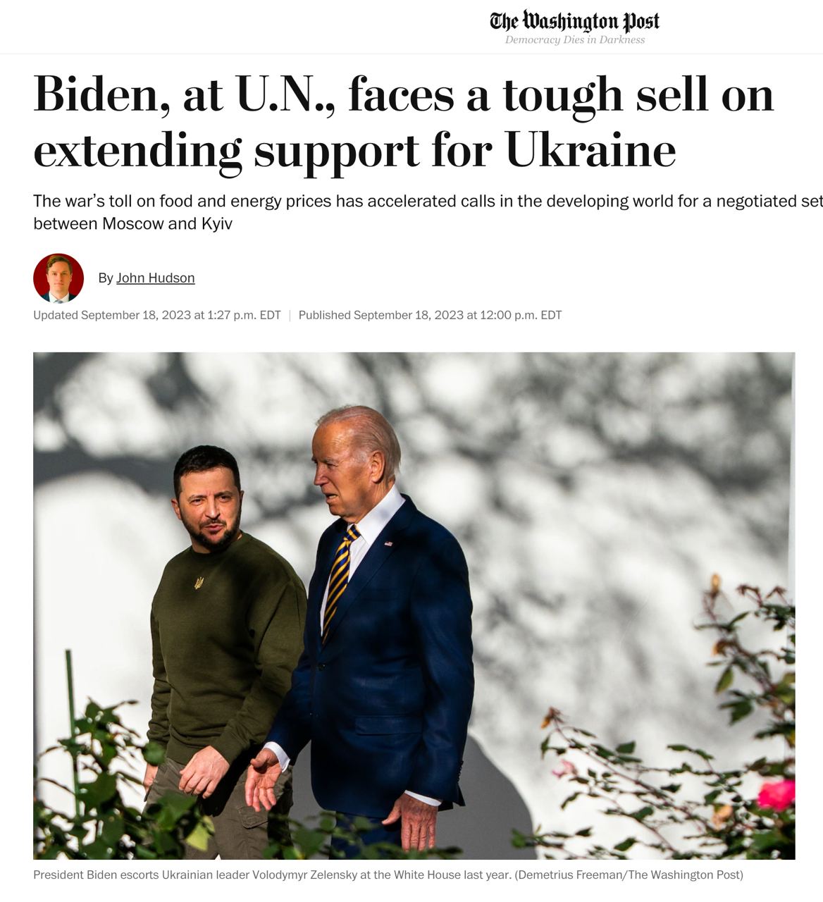 Ущерб от войны сказался на ценах на продовольствие и энергоносители, что усилило призывы развивающихся стран к переговорам. Поддержка Украины среди американской общественности снижается. Но Байдену "будет помогать самый харизматичный голос конфликта: президент Украины Владимир Зеленский".