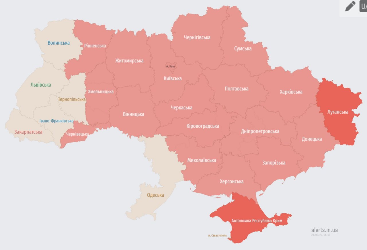 07.49 Тревога распространяется западнее - ее объявили в Ровенской, Черновицкой и Хмельницкой областях.