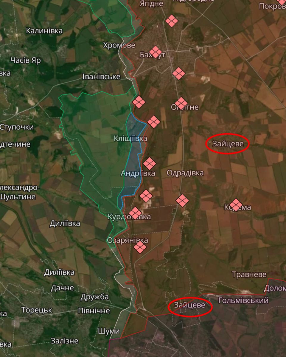 Помимо атак северо-восточнее Андреевки заявлены удары на новом направлении - западнее Зайцево.