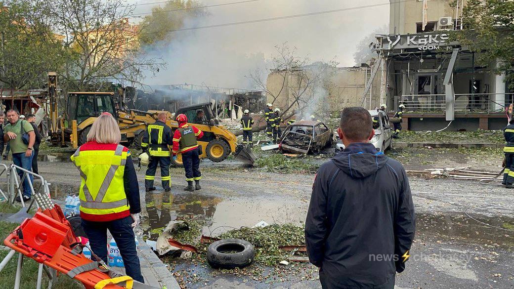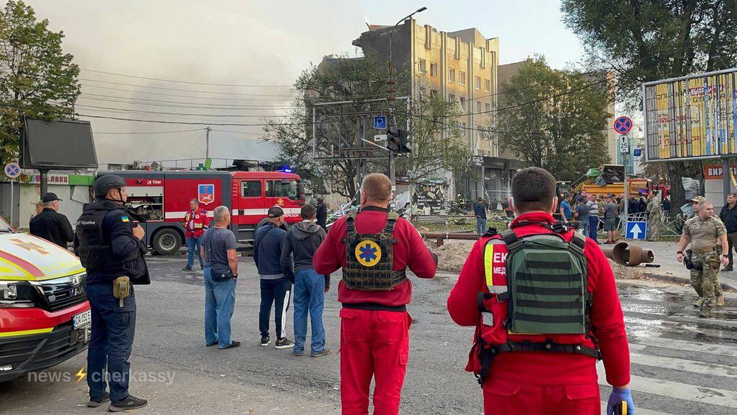 В Черкассах в результате ракетного удара пострадало здание отеля. В результате возник пожар, а также возгорание торговых павильонов на рынке.