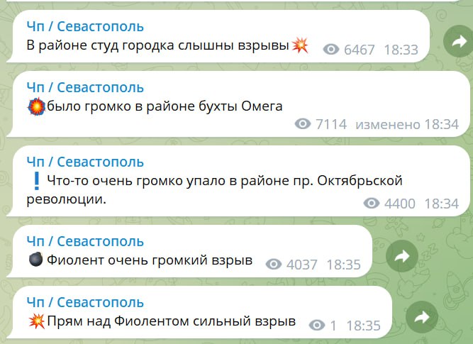 Тем временем паблики Севастополя пишут, что звуки взрывов – это запуски ракет по Одесской области.