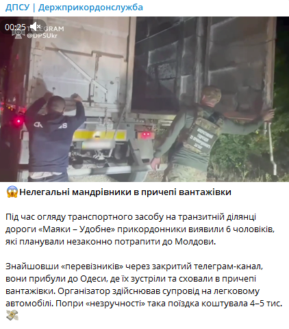 "Перевозчиков" мужчины нашли через закрытый телеграм-канал. Они приехали в Одессу, где их спрятали в прицепе грузовика. Судя по видео, они особо не прятались внутри, а просто рассчитывали, что грузовой отсек не откроют. Организатор сопровождал их на легковом автомобиле.