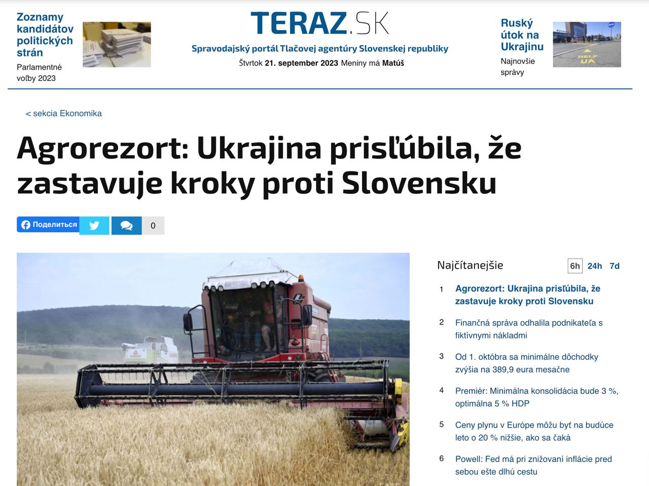 "Украинский министр сельского хозяйства пообещал, что прекратит действия против Словакии, а именно как жалобу в ВТО, так и запрет на ввоз словацкой агропродукции в Украину", - сказала Юричкова.