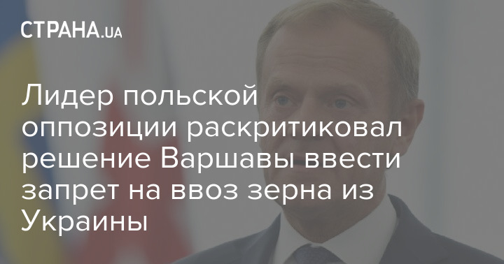Лидер оппозиции Польши Дональд Туск раскритиковал решение правительства ввести односторонний запрет на импорт украинской агропродукции.