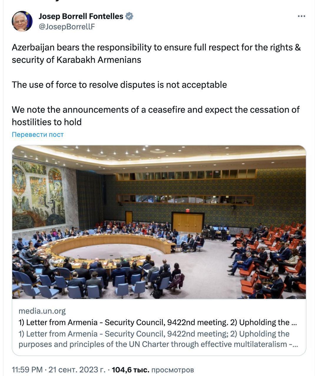 Об этом заявил глава европейской дипломатии Жозеп Боррель, выступая в Совбезе ООН.