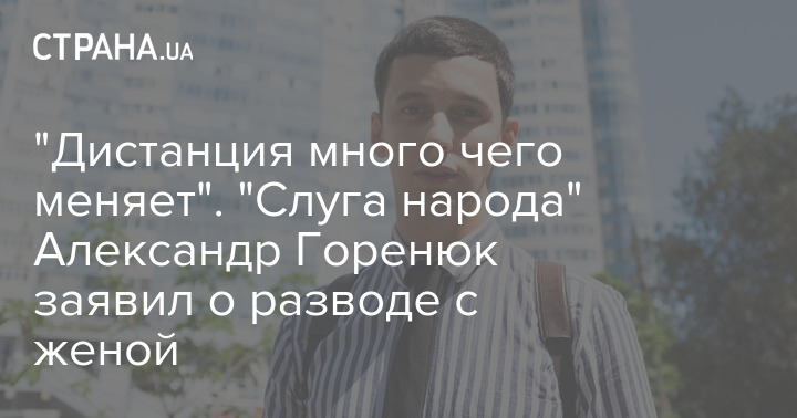 В правящей партии "Слуга народа" продолжаются разводы. Депутат Александр Горенюк заявил, что они с женой разводятся.