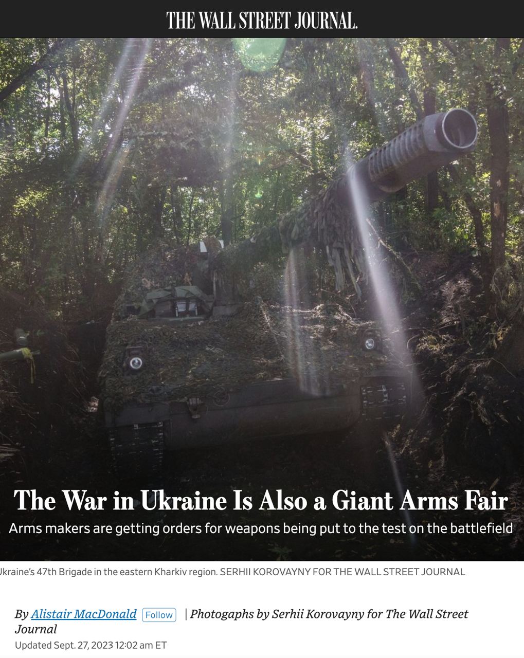 WSJ пишет, что война в Украине – "это также гигантская ярмарка вооружений". Производители могут показать всему миру свое оружие, протестировать его в реальном бою, а дебаты вокруг характеристик различных орудий "могут помочь сформировать военные закупки на долгие годы вперед".