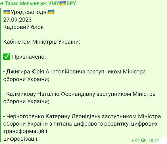 Об этом сообщил в телеграм-канале представитель Кабмина в парламенте Тарас Мельничук.