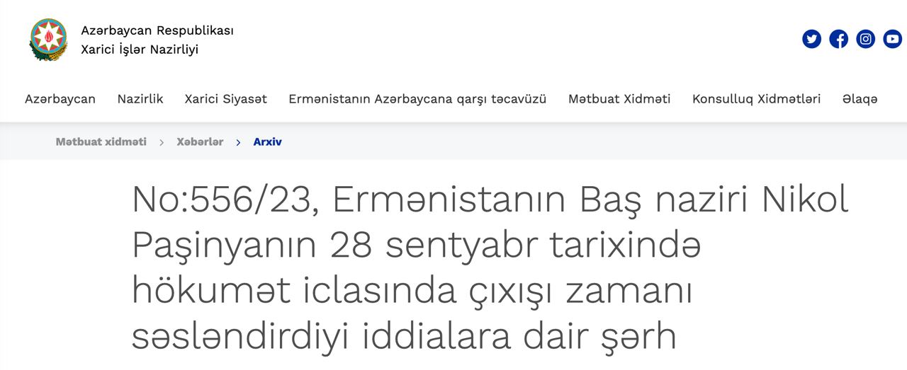Данное обращение было ответом на заявление премьер-министра Армении, в котором он заявил, что в ближайшие дни армян в Нагорном Карабахе не останется. При этом Пашинян назвал происходящее "этнической чисткой".