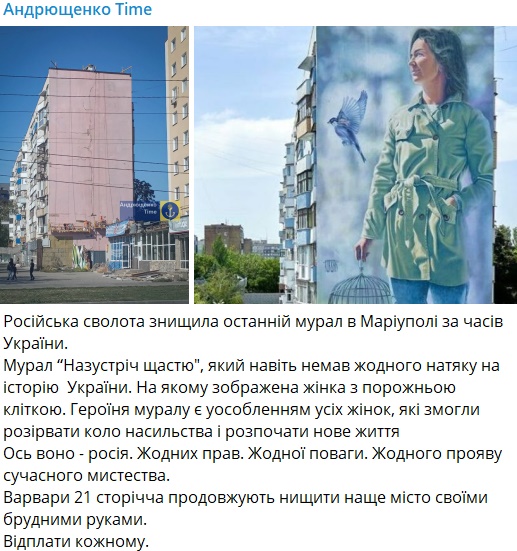 В Мариуполе с многоэтажного дома пропал мурал "Навстречу счастью", который был нарисован еще до начала полномасштабной войны.