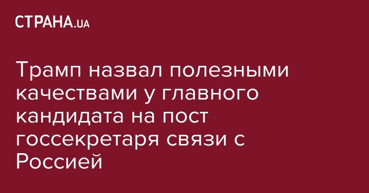 Трамп назвал полезными качествами у главного кандидата на пост госсекретаря связи с Россией