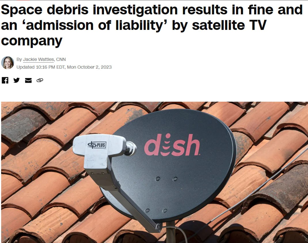В США Федеральная комиссия по связи (FCC) впервые в истории наложила штраф за космический мусор. Регулятор оштрафовал провайдера спутникового телевидения Dish Network на 150 000 долларов из-за того, что вещательный спутник компании не был должным образом убран с орбиты.