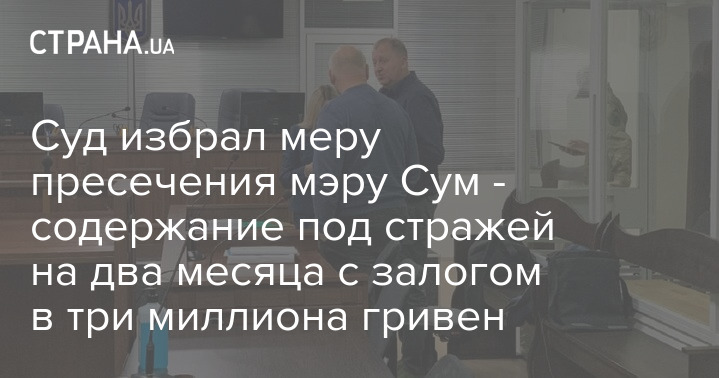 Высший антикоррупционный суд (ВАКС) избрал меру пресечения мэру Сум Александру Лысенко, которого подозревают в получении взятки. Суд взял городского главу Сум под стражу на 60 суток с возможностью выйти под залог в три миллиона гривен.