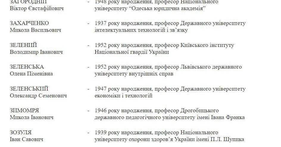 А в приложении среди стипендиатов указан Зеленский Александр Семенович 1947 года рождения, профессор Государственного университета экономики и технологий.
