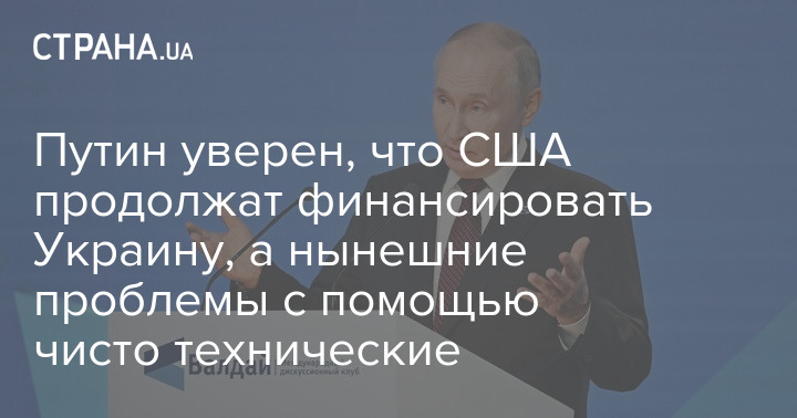 Путин уверен, что США продолжат финансировать Украину, а нынешние проблемы с помощью чисто технические
