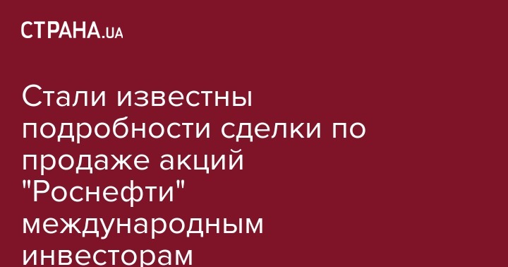 Стали известны подробности сделки по продаже акций "Роснефти" международным инвесторам