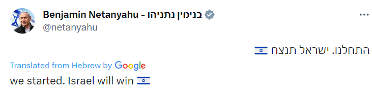 Соответствующий пост Нетаньяху разместил в соцсети X (ранее Twitter).
