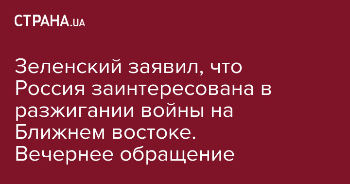 Зеленский заявил, что Россия заинтересована в разжигании войны на Ближнем востоке. Вечернее обращение