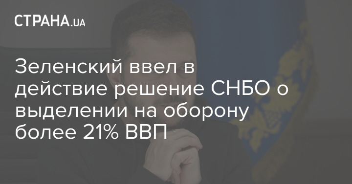 Президент Украины Владимир Зеленский ввел в действие решение СНБО о выделении на оборону более 21% ВВП.