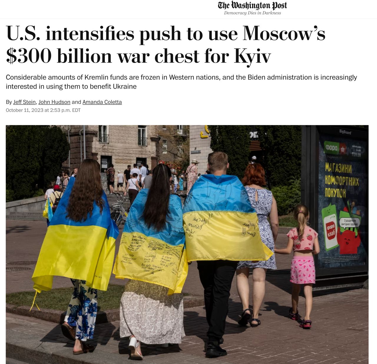 "Официальные лица США непреклонны в том, что российские банковские резервы не могут заменить новую чрезвычайную военную и экономическую помощь из Вашингтона, которая необходима Украине, чтобы пережить следующие несколько месяцев войны", - пишет WP.