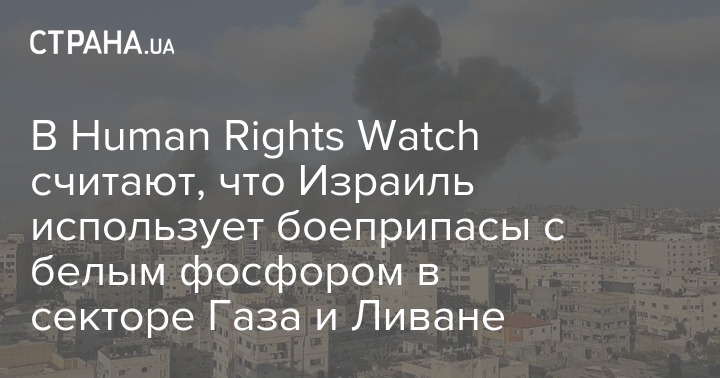 Организация Human Rights Watch заявила, что Израиль использует боеприпасы с белым фосфором в секторе Газа и Ливане, что "подвергает гражданское население риску серьезных и долгосрочных травм".