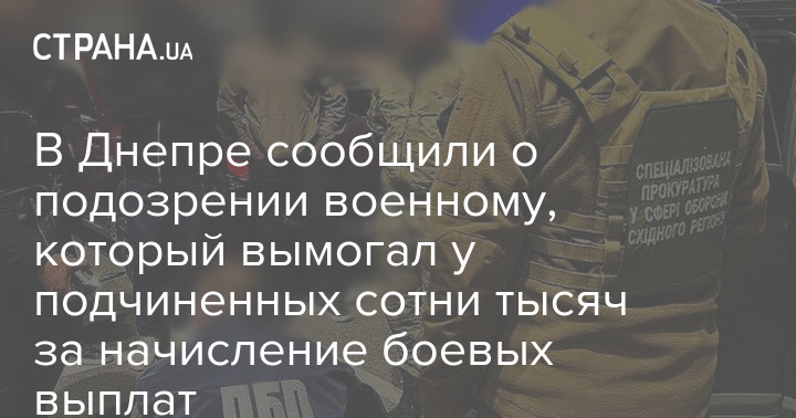 Прокуратура Днепра сообщила о подозрении начальнику группы одной из воинских частей, требовавшему 600 тысяч грн за начисление боевых выплат.