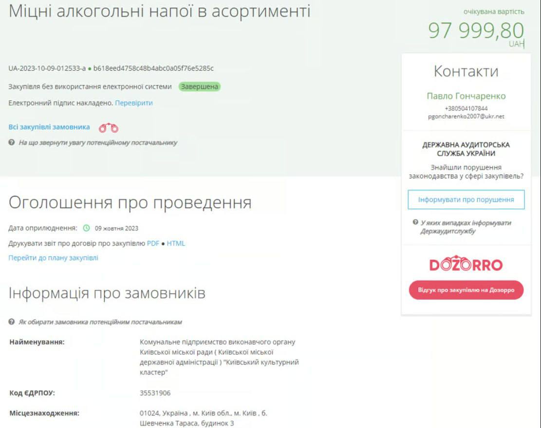 Столичные власти закупили алкогольных напитков почти на 100 тысяч гривен.