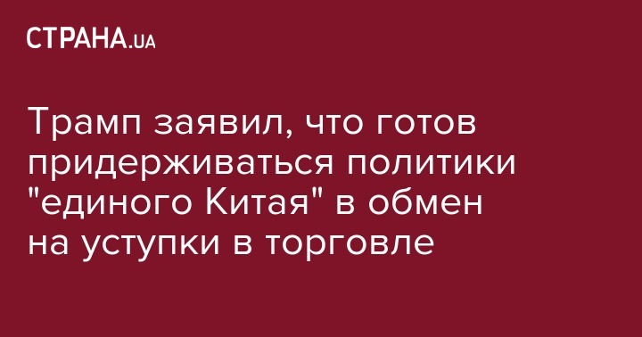 "Я полностью понимаю политику "единого Китая", но я не понимаю, почему мы должны ее придерживаться, если только не заключим с Китаем соглашение, по которому Китай тоже должен будет что-то сделать, в том числе в области торговли", - сказал Трамп, передает ВВС.