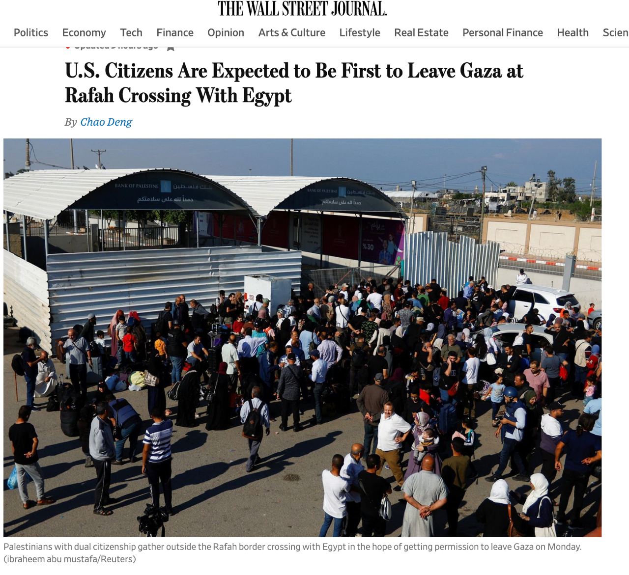 Издание отмечает, что Каир хочет избежать большого наплыва палестинских беженцев, ссылаясь на угрозы безопасности. Поэтому в Египет смогут выйти только иностранные граждане.
