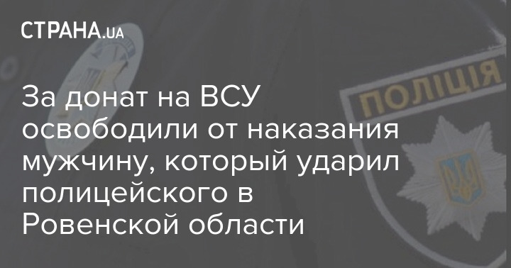 В Ровенской области за донат на ВСУ освободили от наказания мужчину, который дал пощечину полицейскому. Ему назначили условный срок наказания.