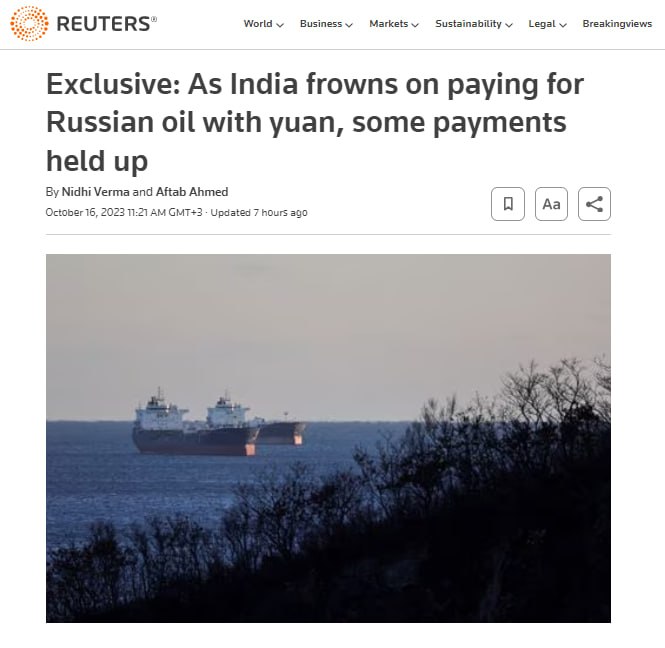 По словам источников агентства, это вызвано тем, что власти Индии недовольны проведением оплаты в юанях вместо рупий.