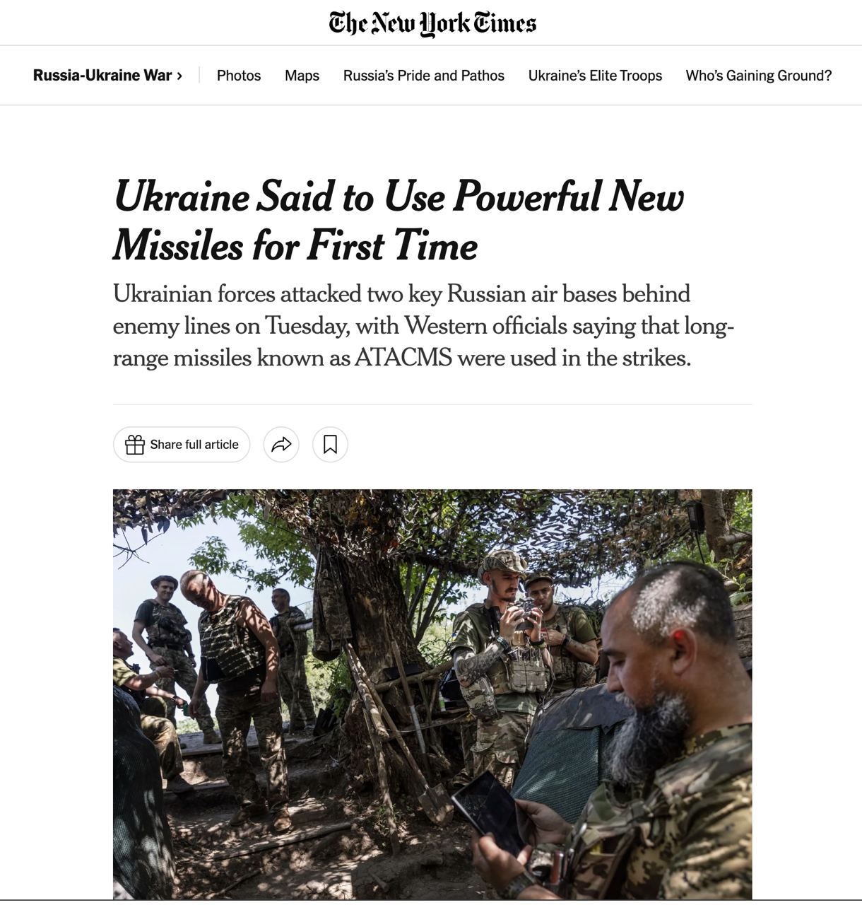 17.46 The New York Times тоже пишет о передаче Украине ATACMS.