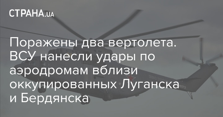 Подробностей ударов не приводится. Сообщается, что ВСУ нанесли успешные удары по вертолетам и оборудованию аэродромов российских оккупационных войск.