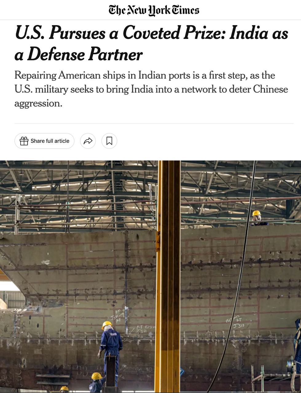 За год уже три американских суда прибыли в Индию на ремонт. Таким образом США стремятся получить доступ к большему количеству мест, где у них нет собственных военных объектов.