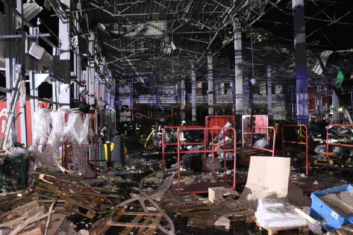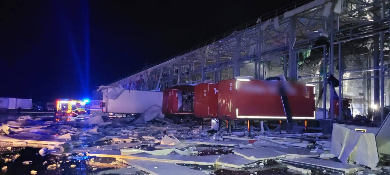 Здание терминала частично разрушено. Повреждены семь грузовых автомобилей и два полуприцепа.