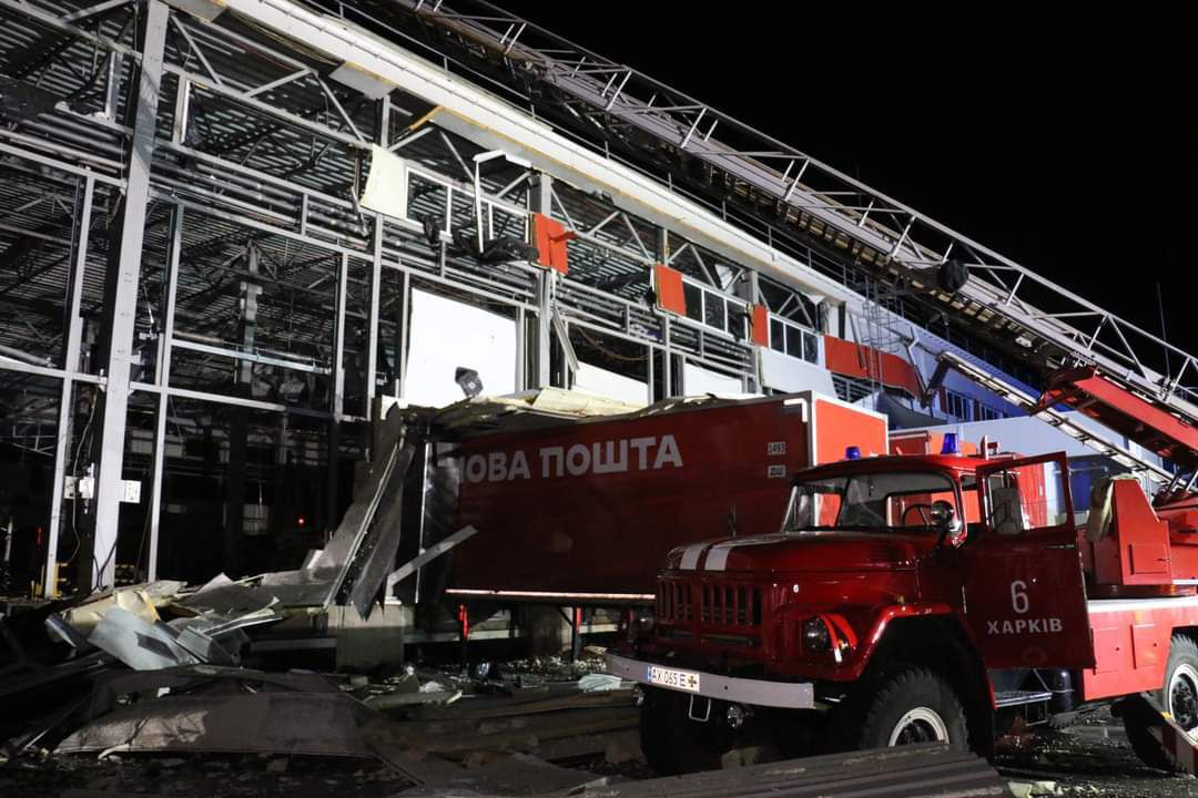 08:16 Фото терминала "Новой почты" под Харьковом, где вчера был ракетный удар.