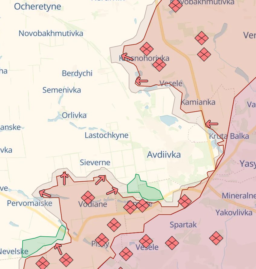Российские паблики предполагают, что цель ВСУ - этот южный фланг "срезать", чтоб снять угрозу окружения Авдеевки. Сейчас на данном участке продолжаются бои.