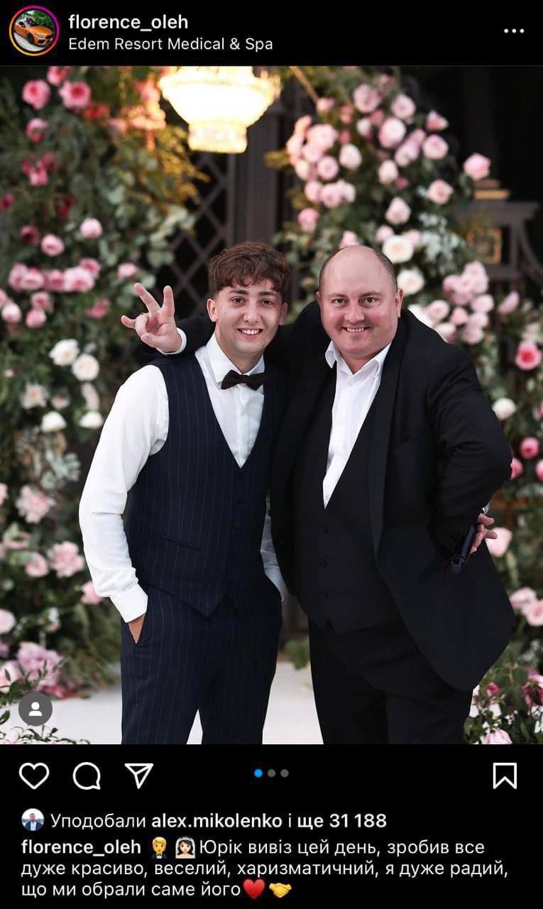 Ведущим был известный комик студии "Квартал 95" Юрий Ткач (на одном из фото он с женихом), который ранее попал в скандал, где его на вечеринке с участием руководителей прокуратуры Житомирской области "посвятили" в рыцари. Позже Ткач в комментарии "Стране" утверждал, что видео было снято еще до вторжения.