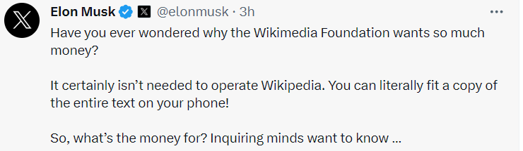 Перед тем как предложить такое переименование, Маск заподозрил "Википедию" в нецелевом расходовании средств.
