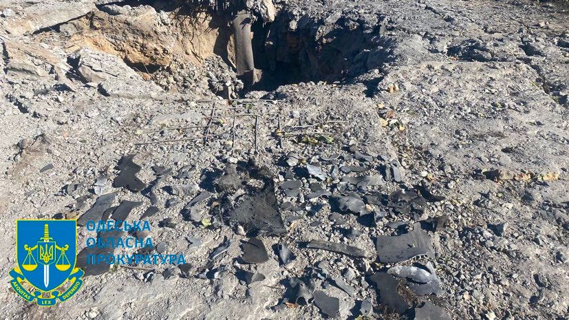 12:20 Фото воронки, которая образовалась после утреннего ракетного удара по судоремонтному заводу под Одессой.