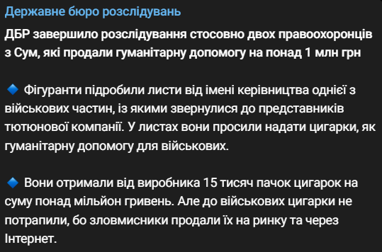 Двое правоохранителей из Сум под видом руководства воинской части выпросили у табачной компании сигарет на миллион гривен в качестве гуманитарной помощи военным.