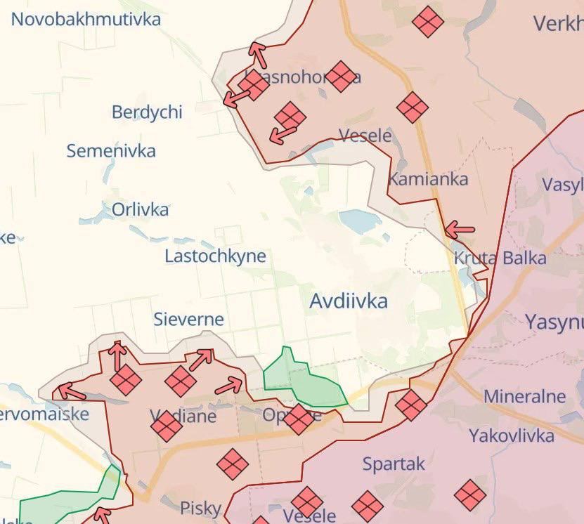 Российские паблики массово пишут о том, что их части подошли вплотную к Авдеевскому коксохимзаводу (на северо-западе Авдеевки) и готовятся вот-вот начать его штурм.