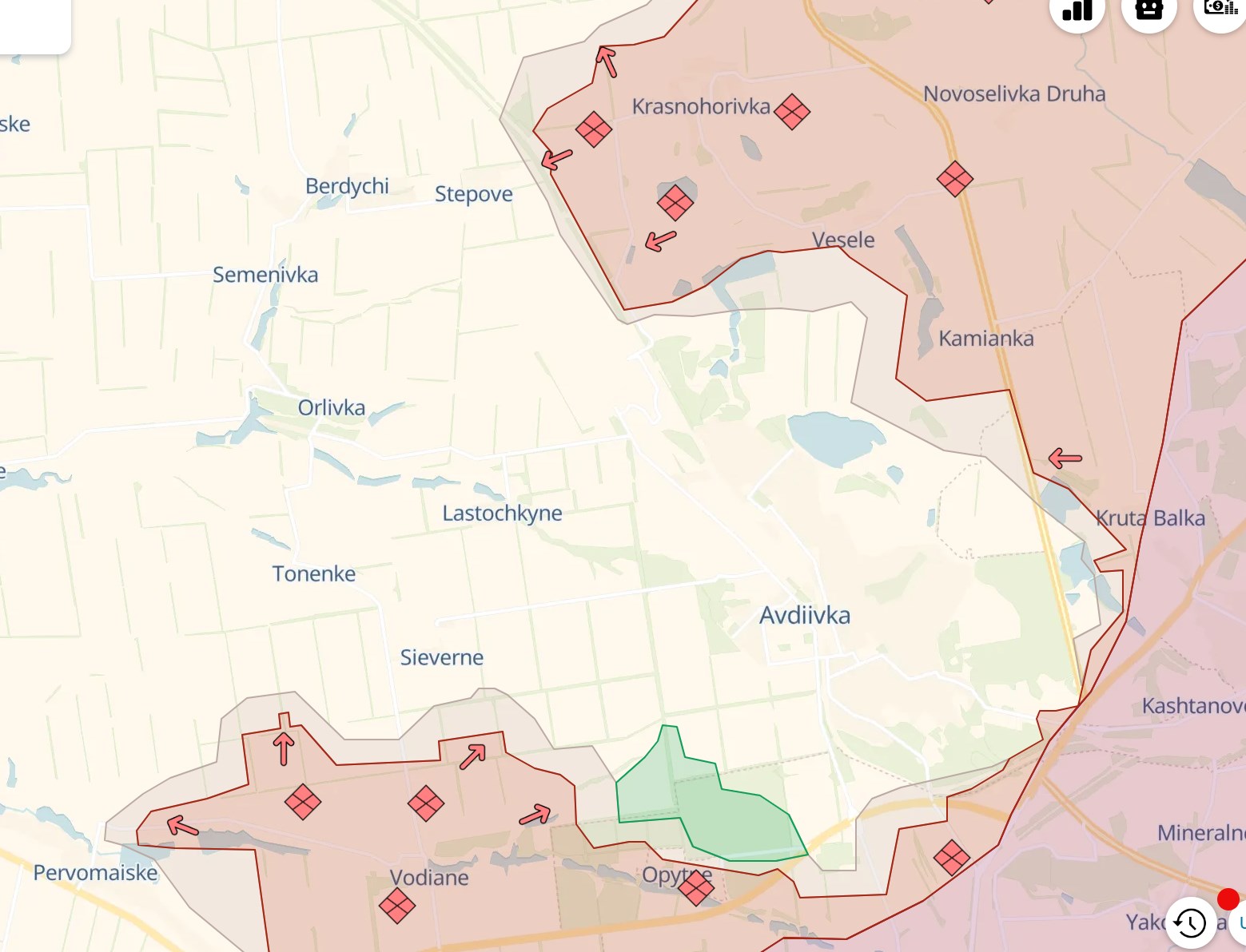 Также части РФ пытаются продвинуться к Авдеевскому коксохимзаводу со стороны террикона - но пока, по данным паблика, безуспешно. Российские паблики заявляют о встречных боях рядом с заводом, а также о своих попытках пробиться к Степному под Красногоровкой.
