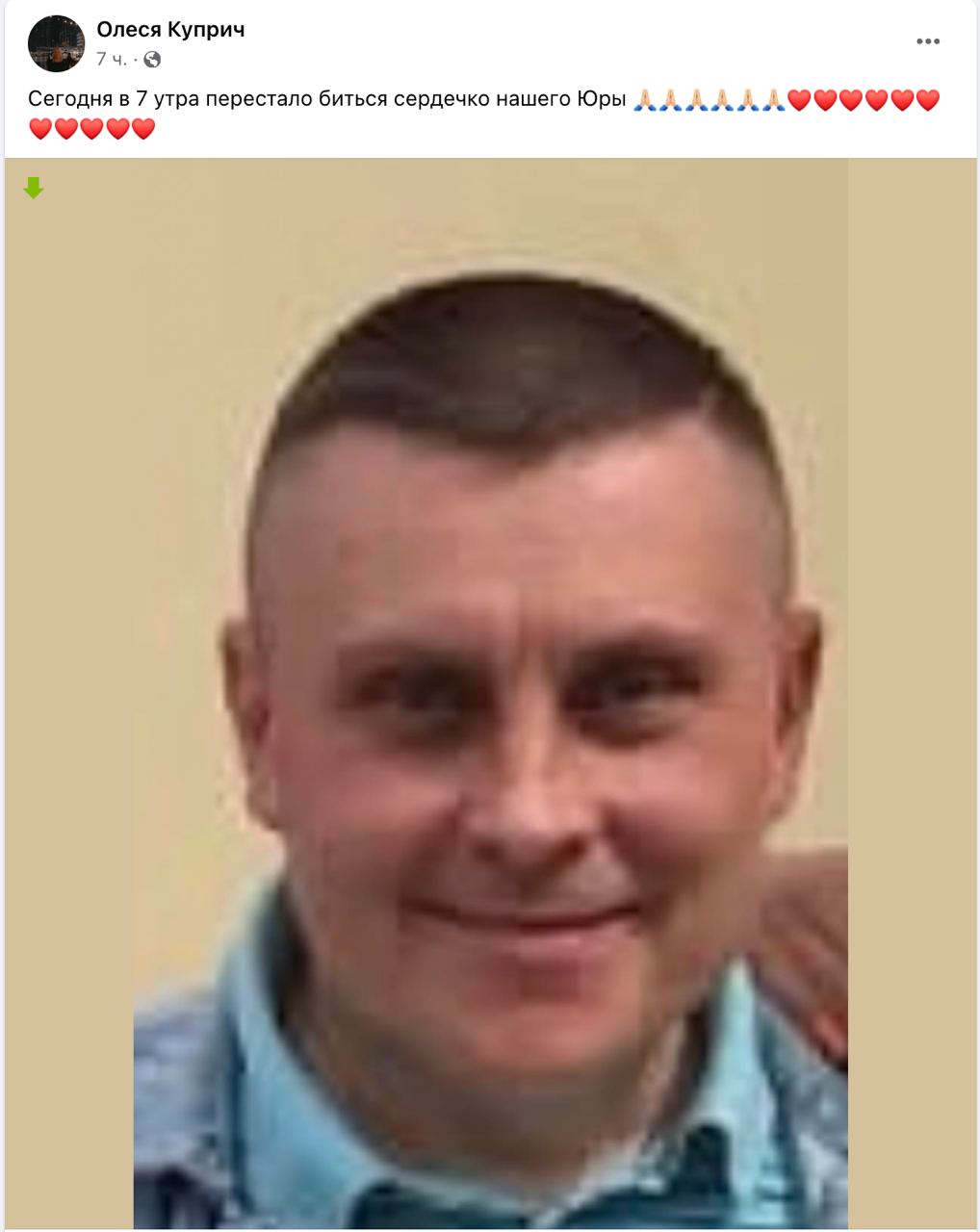 "Сегодня в 7 утра перестало биться сердечко нашего Юры", - написала женщина.