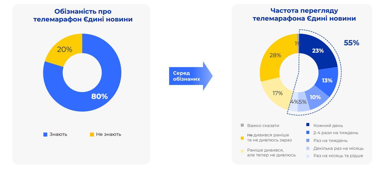 В целом опрос продемонстрировал продолжение тенденции к снижению потребления новостей через телевидение. Большинство взрослых украинцев (76%) получают новости из социальных сетей, а часть людей, пользующихся одновременно телевидением и социальными сетями для получения новостей, стремительно уменьшается – таких в 2023 году только 21%.