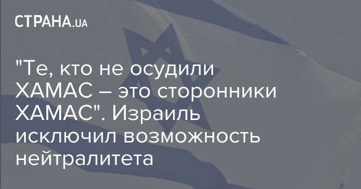 Министерство иностранных дел Израиля исключило возможность нейтралитета в конфликте с ХАМАС. По мнению МИД, те, кто не осудили ХАМАС – это сторонники ХАМАС.