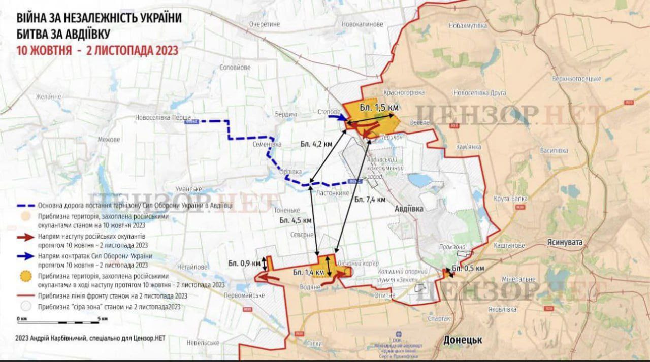 Также, по информации Бутусова, к югу от Авдеевки россияне расширяют прорыв в районе песчаного карьера возле Опытного.