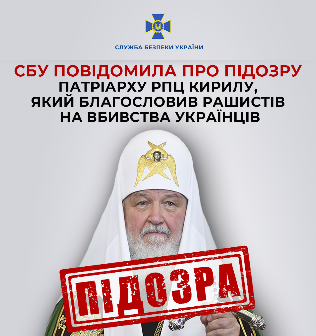 СБУ сообщила о подозрении патриарху РПЦ Кириллу.