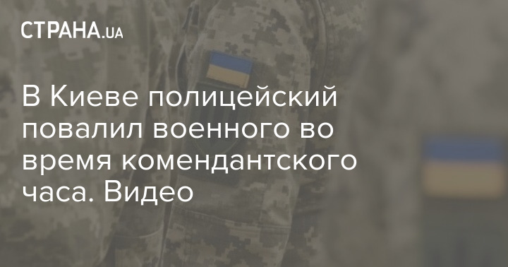 В Киеве полицейский повалил военного, задержанного во время комендантского часа.